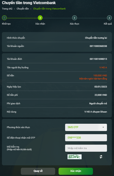- - KH kiểm tra lại thông tin giao dịch đã khởi tạo