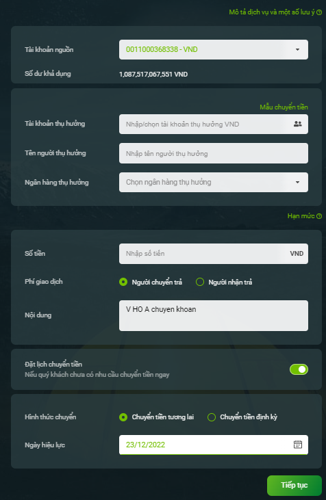 - - Chọn ngày hiệu lực chuyển tiền