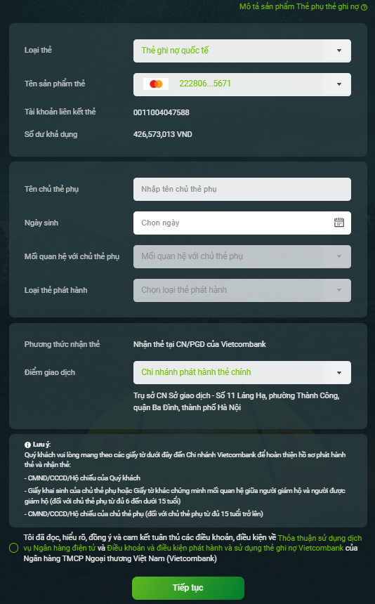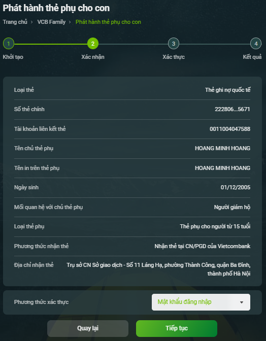 (*) Danh sách PTXT được hiển thị theo quy định của VCB trong từng thời kỳ đối với từng loại giao dịch và số tiền giao dịch bao gồm: Mật khẩu đăng nhập VCB Digibank, VCB Smart OTP.