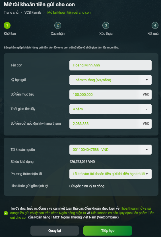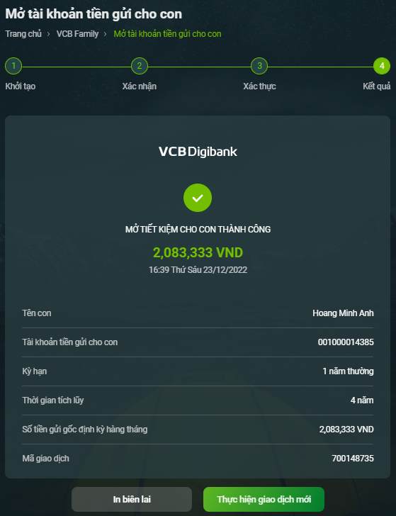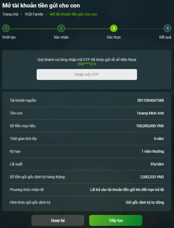 - - KH kiểm tra lại thông tin giao dịch đã khởi tạo