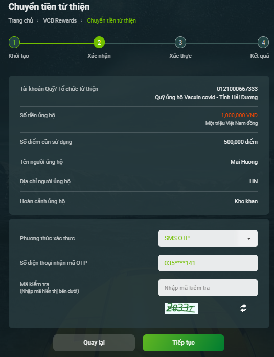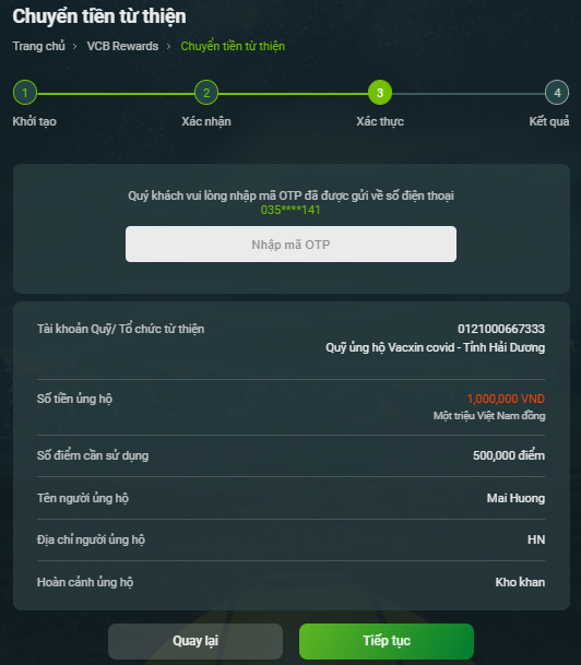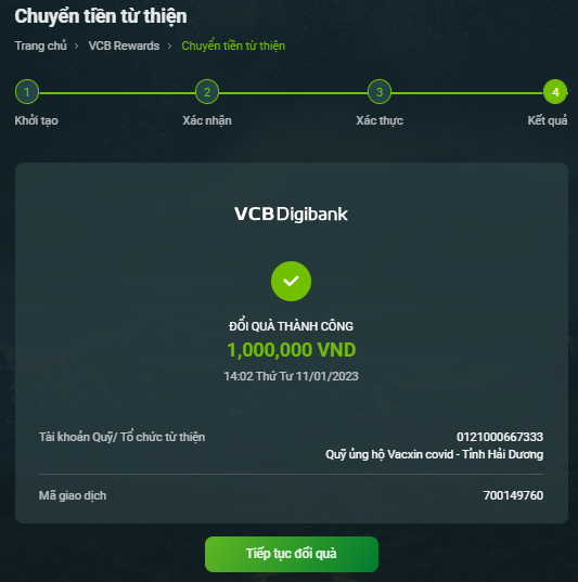 - - Nhấn chọn tiếp tục để hoàn thành giao dịch