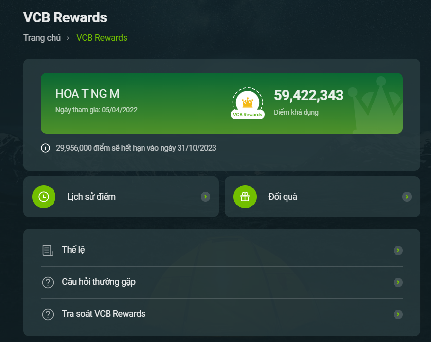 - Nhấn chọn VCB Rewards > Đổi quà
