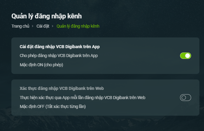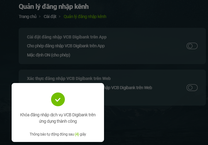 Hiển thị popup xác nhận có muốn khóa VCB Digibank trên app: