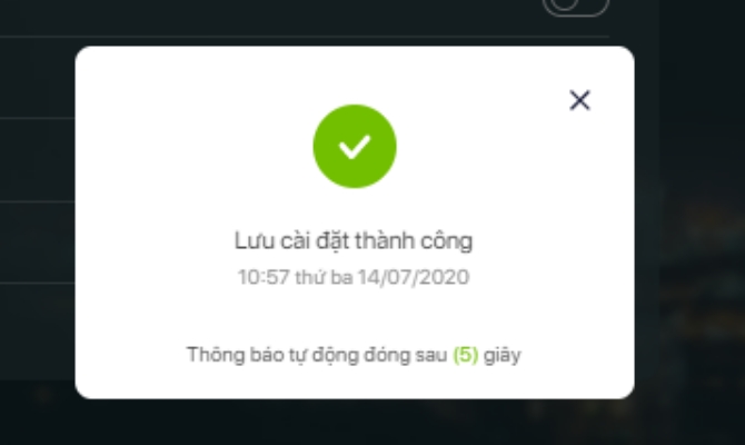 - Màn hình hiện thông báo cài đặt thành công