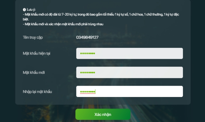 Nhập vào Mật khẩu cũ, Mật khẩu mới và Xác nhận mật khẩu mới