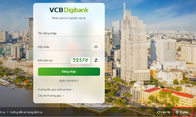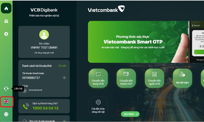 - KH nhận chọn icon ngôn ngữ góc phải màn hình để đổi giữa 2 ngôn ngữ: Tiếng việt và Tiếng anh.
