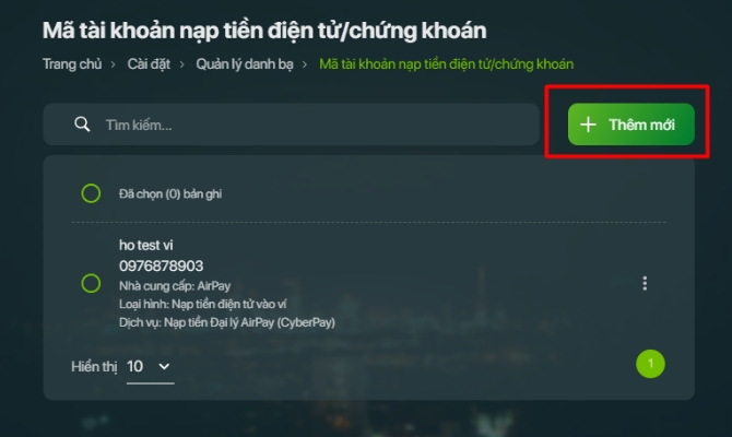 - Nhấn Thêm mới