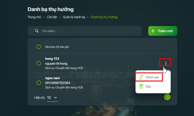- Chọn 1 danh bạ muốn xóa