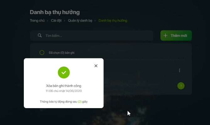 - Hiển thị thông báo Xoá danh bạ thành công