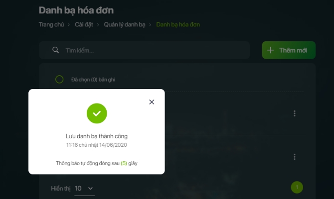 Hiển thị thông báo lưu danh bạ thành công