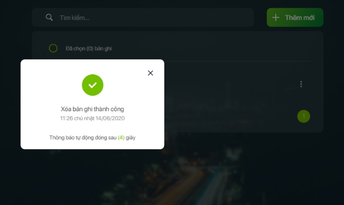 - Hiển thị thông báo Xoá danh bạ thành công