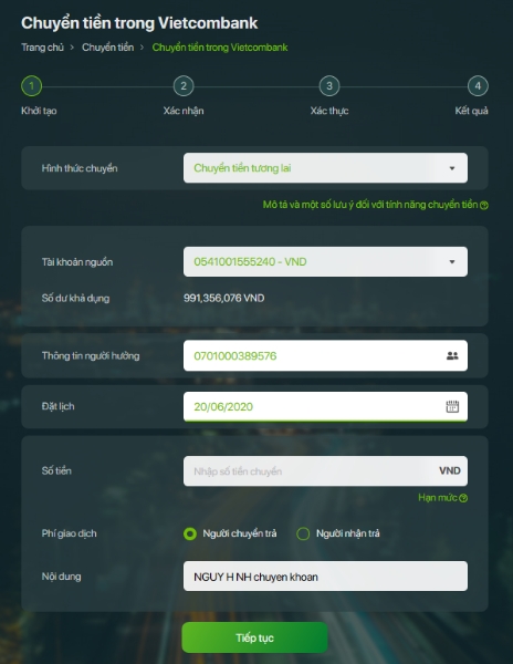- Chọn hình thức Chuyển tiền ngày tương lai