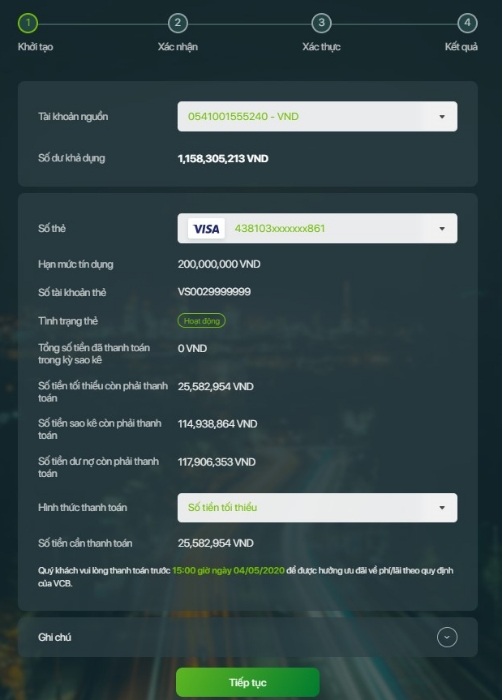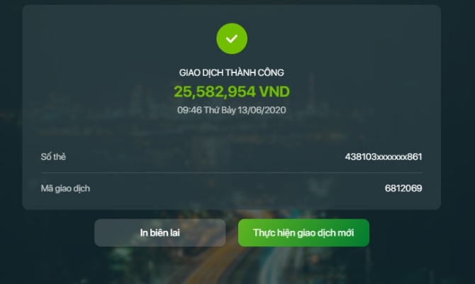 - Hiển thị thông tin của giao dịch vừa thực hiện: số tiền giao dịch, số thẻ, mã giao dịch
