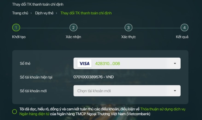 - Chọn Số tài khoản mới