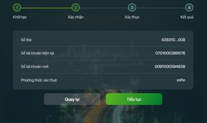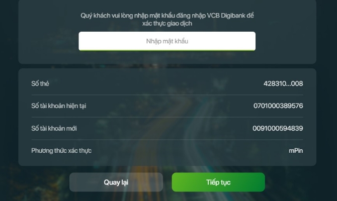 - Nhấn chọn tiếp tục để hoàn thành giao dịch