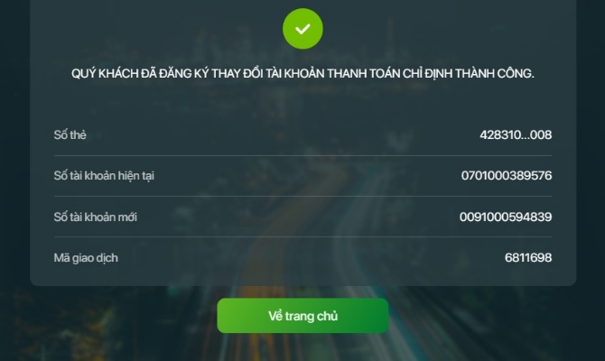 - Hiển thị thông tin của giao dịch vừa thực hiện: số thẻ, số dư tài khoản hiện tại, số tài khoản mới, mã giao dịch