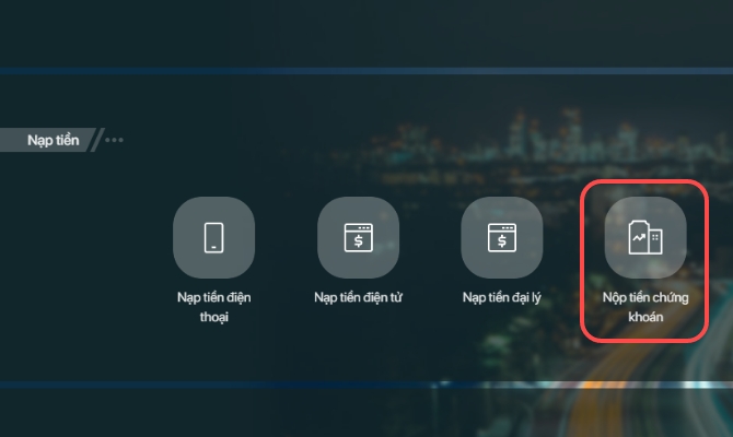 Tại màn hình chính -> chọn Nộp tiền chứng khoán