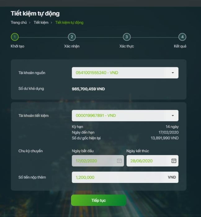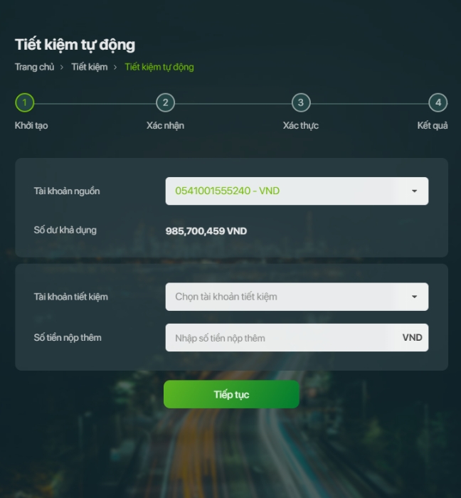- Nhập và chọn thông tin để đăng ký tiết kiệm tự động
